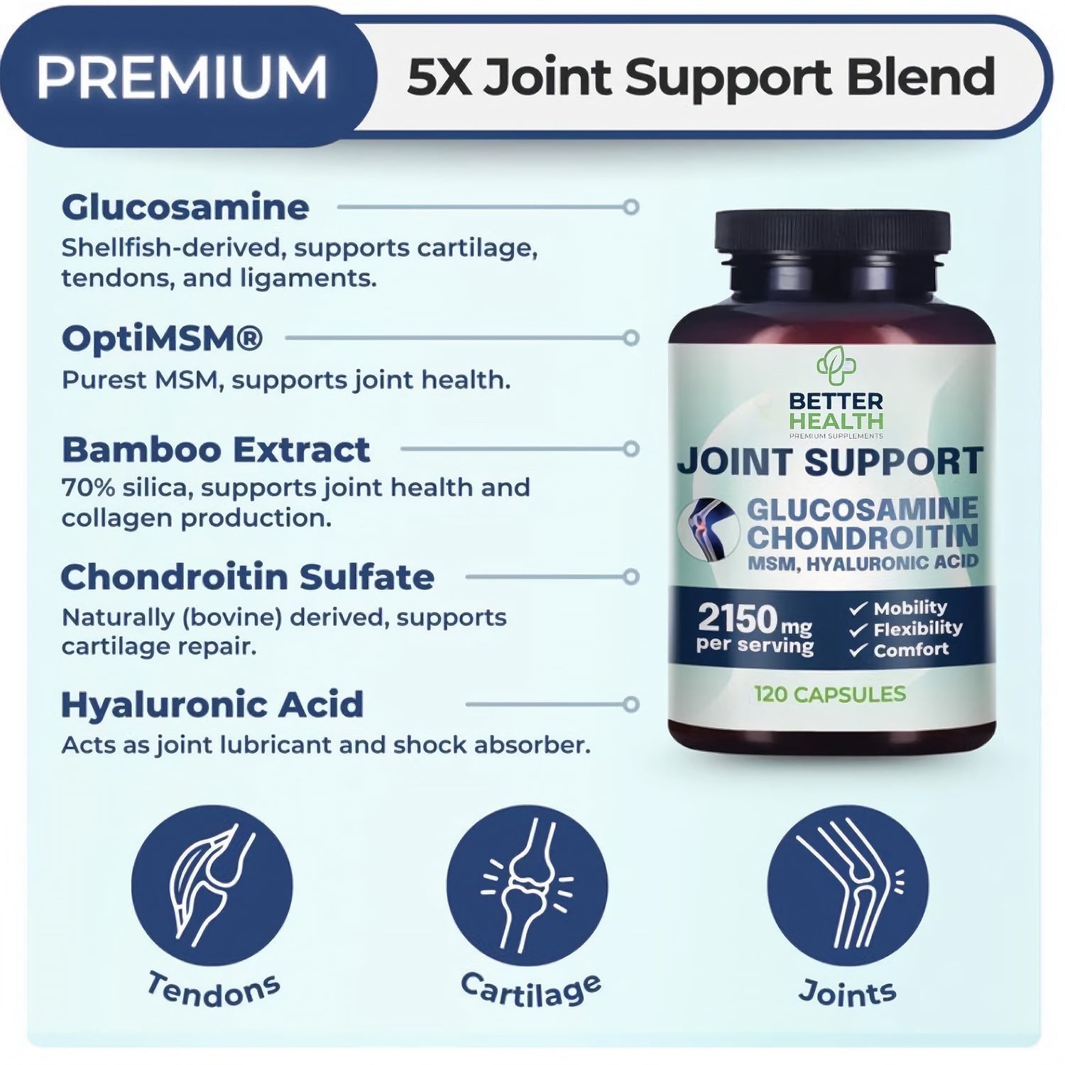 - Chondroitin → supports cushioning & shock absorption